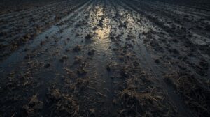 水豊かな肥沃の田土の全体画像。季節は晩冬