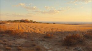 高地にある燥土の畑を描いて